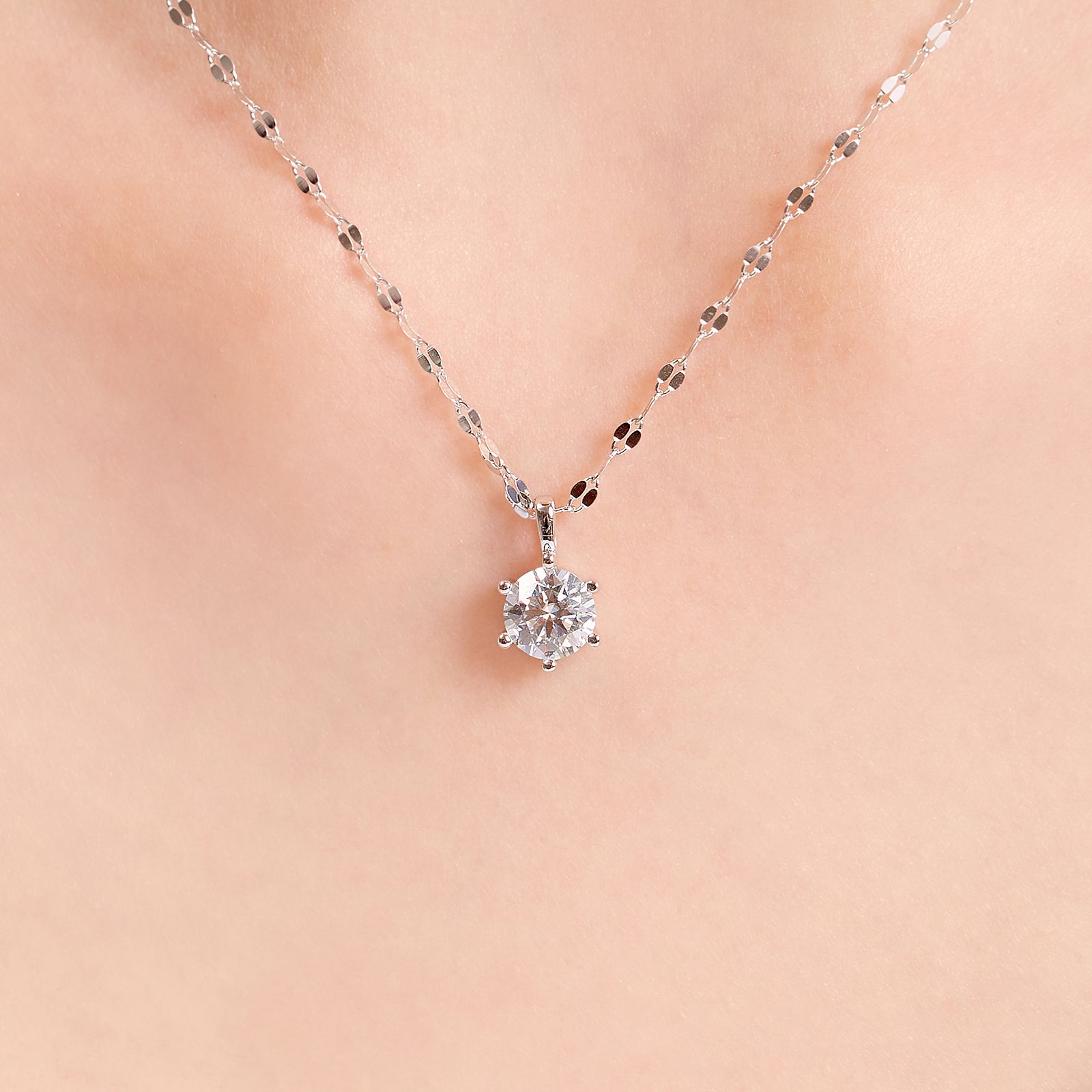 This moissanite pendant features a GRA-certified VVS1, D-color stone secured in a clean six-prong setting, designed to enhance brilliance and clarity. Crafted in 925 sterling silver finished with 18K gold vermeil, the delicate sequin chain adds a subtle, modern shimmer—easy to wear alone or layered.